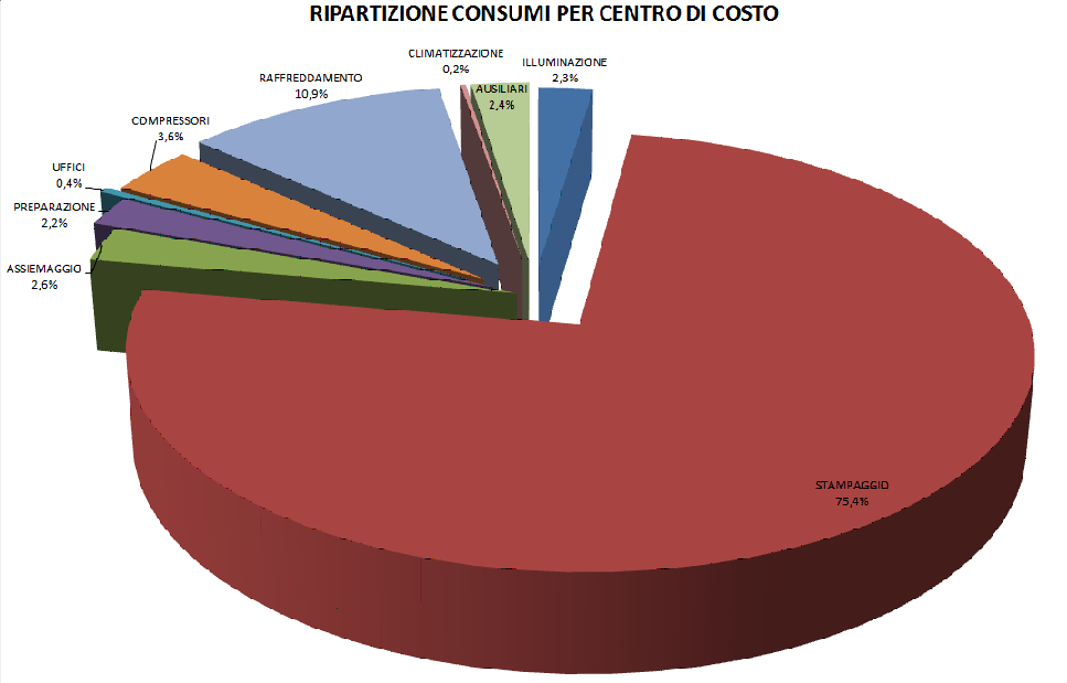 Ecco ad esempio in quali reparti sono divisi i consumi di energia elettrica in un’azienda che si occupa di stampaggio della plastica in Provincia di Vicenza: